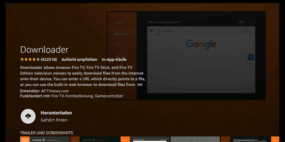 3) Open the entry for the Fire TV Downloader app.